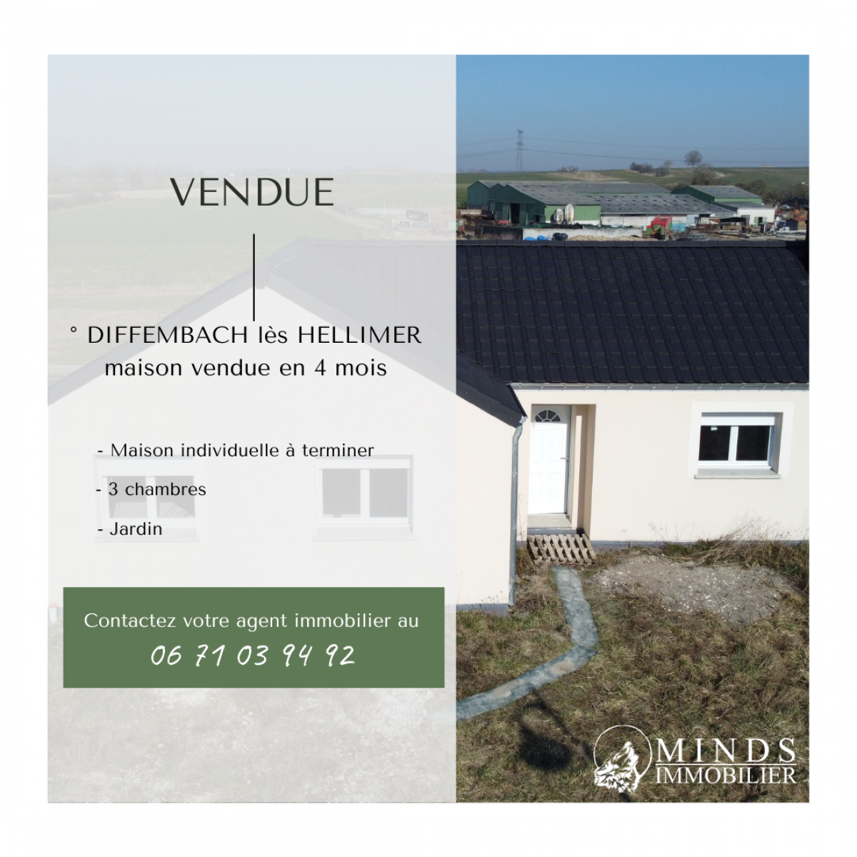 Maison individuelle neuve de plain pied à terminer vendue à Diffembach lès Hellimer