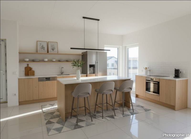 - un séjour lumineux ouvert sur l’espace cuisine,