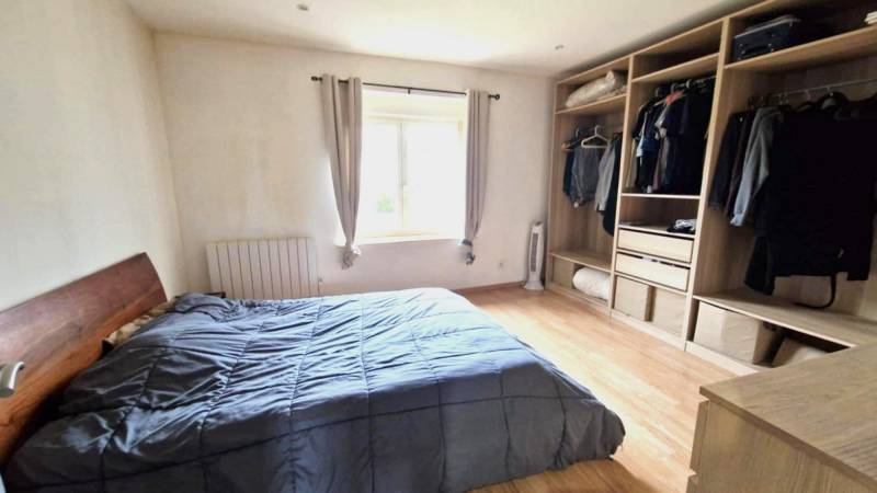 Au rez-de-chaussée, l’entrée dessert une salle à manger conviviale, un salon spacieux et une cuisine équipée. Un garage moto complète cet espace.