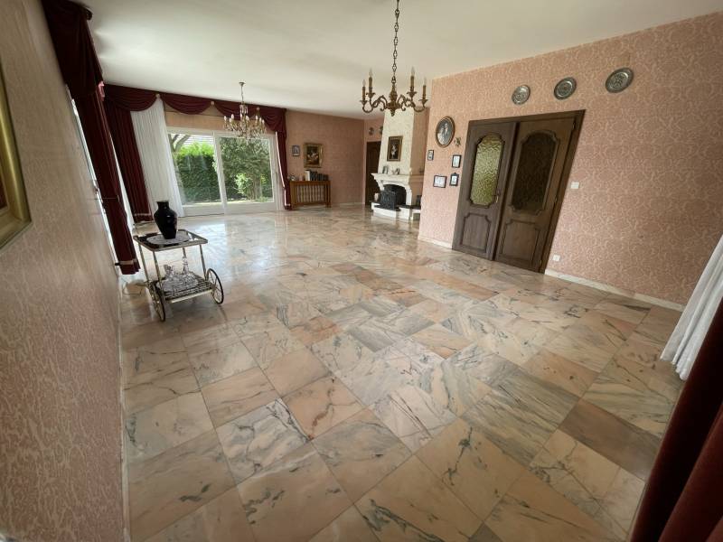 Sous-sol complet avec un garage en enfilade, le tout sur une parcelle de 9,27 ares.